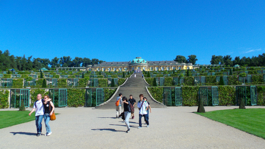 これはポツダムのサンスーシ宮殿に行った時の写真。中庭から宮殿の方を撮った写真なんですがこれで見ると宮殿がちょっと小さいですね…