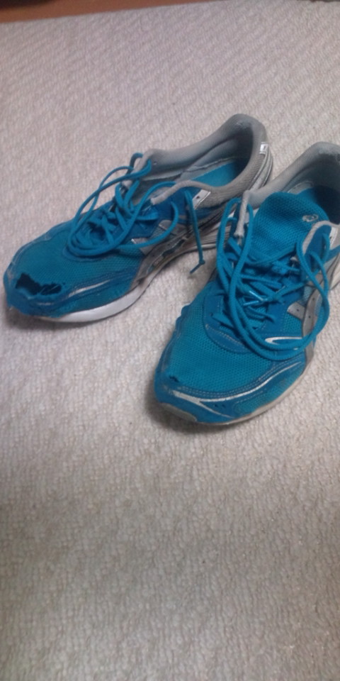 春先、もしかしたらもっと前からこんな状態で、なんとかごまかしながら履いてたんですけどもう限界かなーと思って新しいシューズを買ってしまいました。